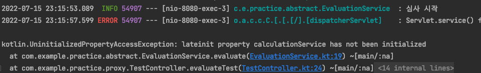 저와 같은 에러를 보고계신가요? logging 출력도 안찍혔으며 심지어 CalculationService가 초기화도 안되어있다고 나오네요.