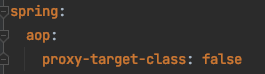 그리고 application.yml or application.properties 파일에 아래의 프로퍼티를 셋합니다. 저는 yml 파일확장자로 만들었기에 계층적 구조 형태로 선언을 하였는데 properties 파일확장자를 이용하시는 분은 key-value 형태로 spring.aop.proxy-target-class=false 로 추가해주시면 될 것 같습니다.