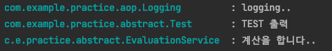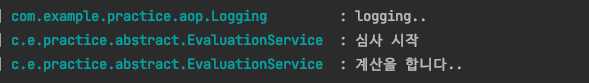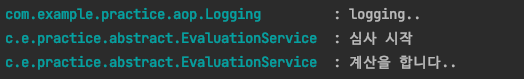 이렇게 aop를 이용하면 특징이 있는데요. Logging 에노테이션이 붙은 클래스에 대한 프록시가 만들어지는 것입니다. 따라서 저희가 위에서 만들었던 EvaluationService의 evaluate 메서드를 호출하게 되면 만들어진 프록시가 logging 로그를 찍은 후 원래 클래스의 메서드를 호출하는 것이죠.