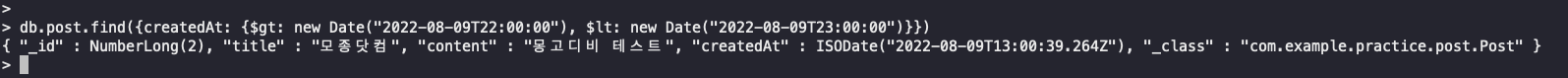 {createdAt: {$gt: new Date("2022-08-09T22:00:00.000"), $lt: new Date("2022-08-09T23:00:00.000")}}