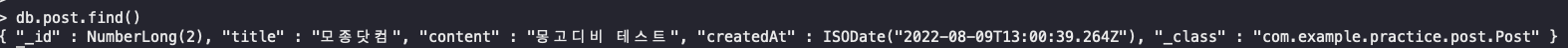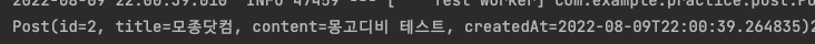 val post = Post(id = 2L, title = "모종닷컴", content = "몽고디비 테스트", createdAt = LocalDateTime.now())