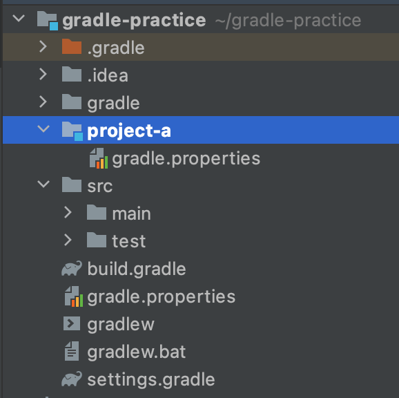 allproejct를 사용할 것임으로 루트 프로젝트(사진의 gradle-practice) 또한 해당 프로퍼티가 필요하므로 루프 프로젝트 밑에도 gradle.properties를 아래의 내용으로 추가하였습니다.