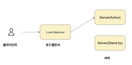 액티브-스탠바이 동작 방식 또한 동일한 서버 두개가 필요합니다. 다만 액티브-액티브 동작 방식과 다른 점은 하나의 서버는 준비 상태라는 점입니다. 따라서 현재 활성화된 서버에 장애가 발생하게 되면 준비 상태인 서버를 활성화 상태로 만들고 로드밸런서가 트래픽을 해당 서버로 넘겨주게 됩니다. 단점으로는 서버를 전환하는 과정에서 순간적인 통신 단절(=순단 현상)이 있습니다.