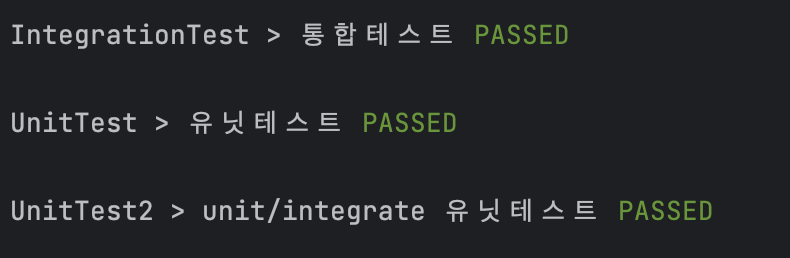 이번에는 IntegrationTest가 제외된 상태로 실행되었음을 볼 수 있었습니다.
