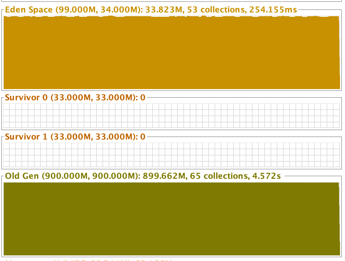 다만 우리가 아는 Survival 영역, Eden 영역, Old Generation 영역 등이 상세히 보여주진 않고 이 합산된 값들만 보여주고 있습니다. 그래서 조금 보기가 힘든데 각 영역을 상세히 보여줄 수 있는 플러그인이 있어 먼저 이를 설치하는 게 좋습니다.