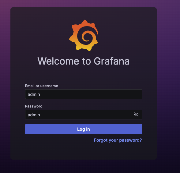 위 명령어로 컨테이너를 올려놓은 후 브라우저에서 grafana에 접속하도록 합니다(http://localhost:3001). 그러면 로그인 페이지가 보일 텐데 초기 아이디 / 비밀번호는 admin/admin 입니다. 그 이후 비밀번호 변경하라고 하는 건 깔끔하게 Skip 합니다.